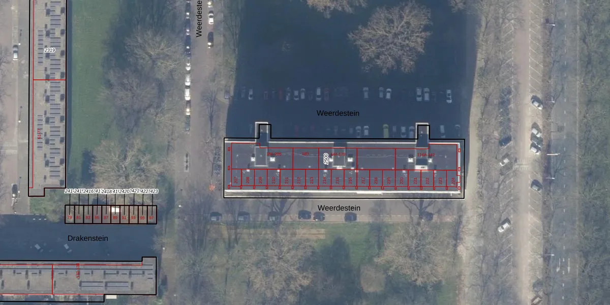 Het perceel waarop Weerdestein 180 staat heeft een oppervlakte van 1563 m². Dit is een zeer groot perceel. De perceeloppervlakte wordt geregistreerd door het Kadaster. Gedetailleerde informatie over de maten van dit perceel kunt u vinden in het rapport Kadastrale kaart met maatvoering van Weerdestein 180.