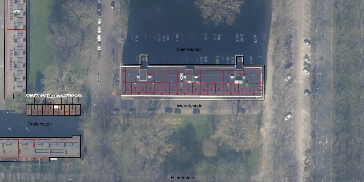 Het perceel waarop Weerdestein 214 staat heeft een oppervlakte van 1563 m². Dit is een zeer groot perceel. De perceeloppervlakte wordt geregistreerd door het Kadaster. Gedetailleerde informatie over de maten van dit perceel kunt u vinden in het rapport Kadastrale kaart met maatvoering van Weerdestein 214.