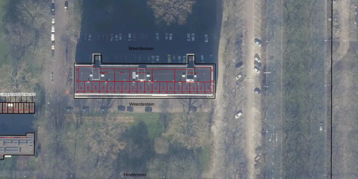 Het perceel waarop Weerdestein 220 staat heeft een oppervlakte van 1563 m². Dit is een zeer groot perceel. De perceeloppervlakte wordt geregistreerd door het Kadaster. Gedetailleerde informatie over de maten van dit perceel kunt u vinden in het rapport Kadastrale kaart met maatvoering van Weerdestein 220.