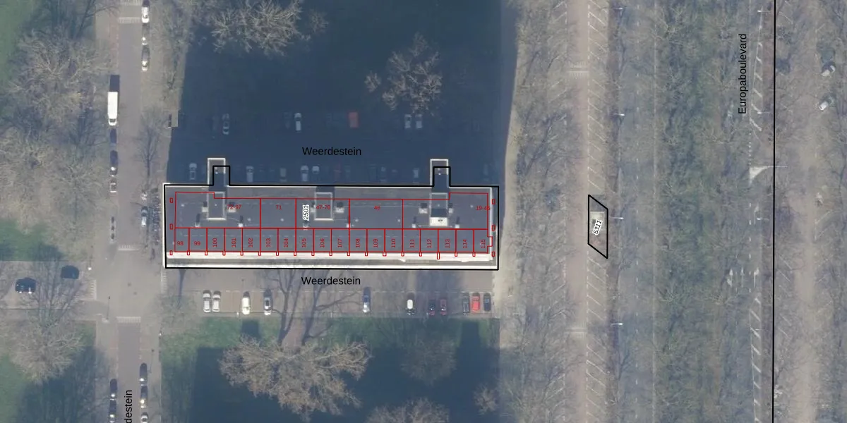 Het perceel waarop Weerdestein 38 staat heeft een oppervlakte van 1564 m². Dit is een zeer groot perceel. De perceeloppervlakte wordt geregistreerd door het Kadaster. Gedetailleerde informatie over de maten van dit perceel kunt u vinden in het rapport Kadastrale kaart met maatvoering van Weerdestein 38.