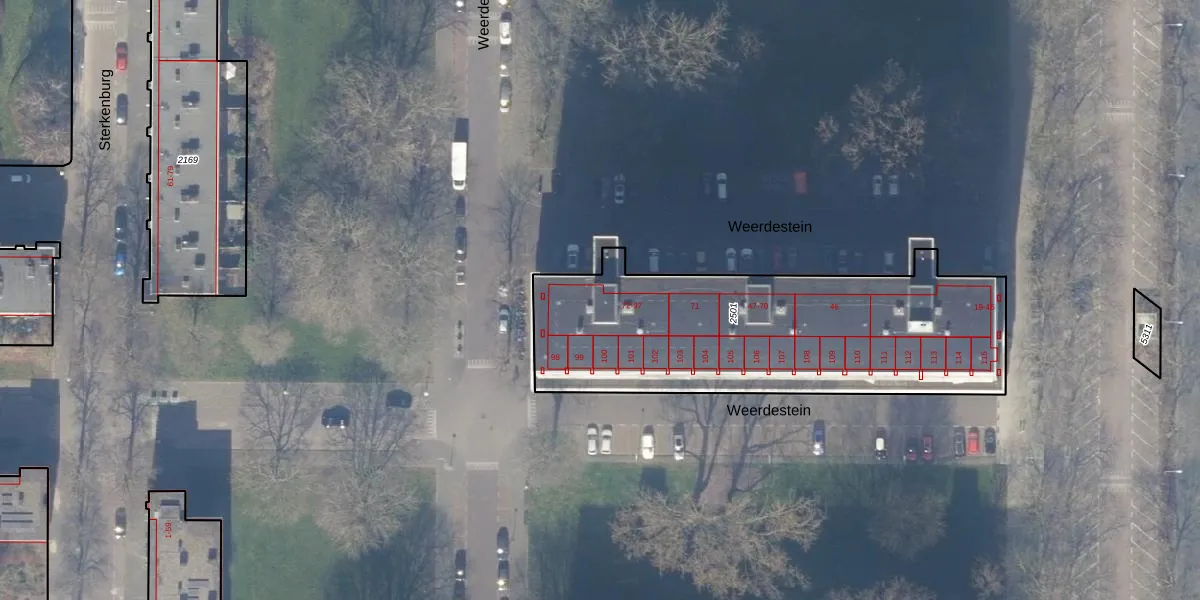 Het perceel waarop Weerdestein 74 staat heeft een oppervlakte van 1564 m². Dit is een zeer groot perceel. De perceeloppervlakte wordt geregistreerd door het Kadaster. Gedetailleerde informatie over de maten van dit perceel kunt u vinden in het rapport Kadastrale kaart met maatvoering van Weerdestein 74.