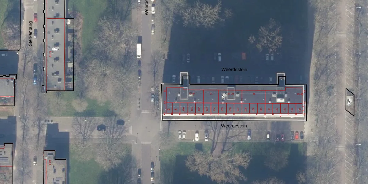 Het perceel waarop Weerdestein 75 staat heeft een oppervlakte van 1564 m². Dit is een zeer groot perceel. De perceeloppervlakte wordt geregistreerd door het Kadaster. Gedetailleerde informatie over de maten van dit perceel kunt u vinden in het rapport Kadastrale kaart met maatvoering van Weerdestein 75.
