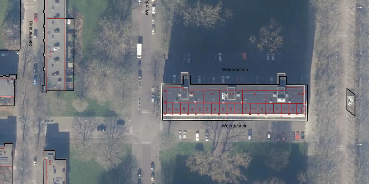 Het perceel waarop Weerdestein 76 staat heeft een oppervlakte van 1564 m². Dit is een zeer groot perceel. De perceeloppervlakte wordt geregistreerd door het Kadaster. Gedetailleerde informatie over de maten van dit perceel kunt u vinden in het rapport Kadastrale kaart met maatvoering van Weerdestein 76.