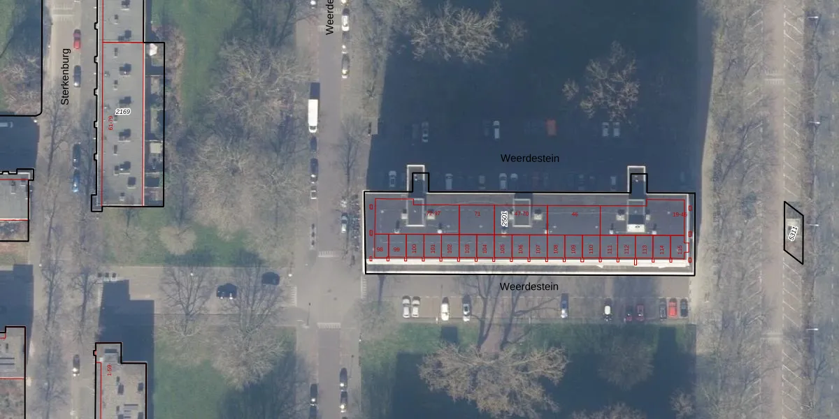 Het perceel waarop Weerdestein 77 staat heeft een oppervlakte van 1564 m². Dit is een zeer groot perceel. De perceeloppervlakte wordt geregistreerd door het Kadaster. Gedetailleerde informatie over de maten van dit perceel kunt u vinden in het rapport Kadastrale kaart met maatvoering van Weerdestein 77.