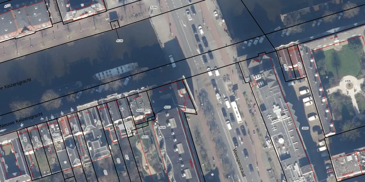 Weesperstraat 106 is gelegen op kadastraal perceel ASD11O4658. Deze kadastrale aanduiding is uniek en wordt gebruikt door het Kadaster om eigendomsrechten en andere zakelijke rechten vast te leggen. Het perceel maakt onderdeel uit van de kadastrale gemeente Amsterdam.