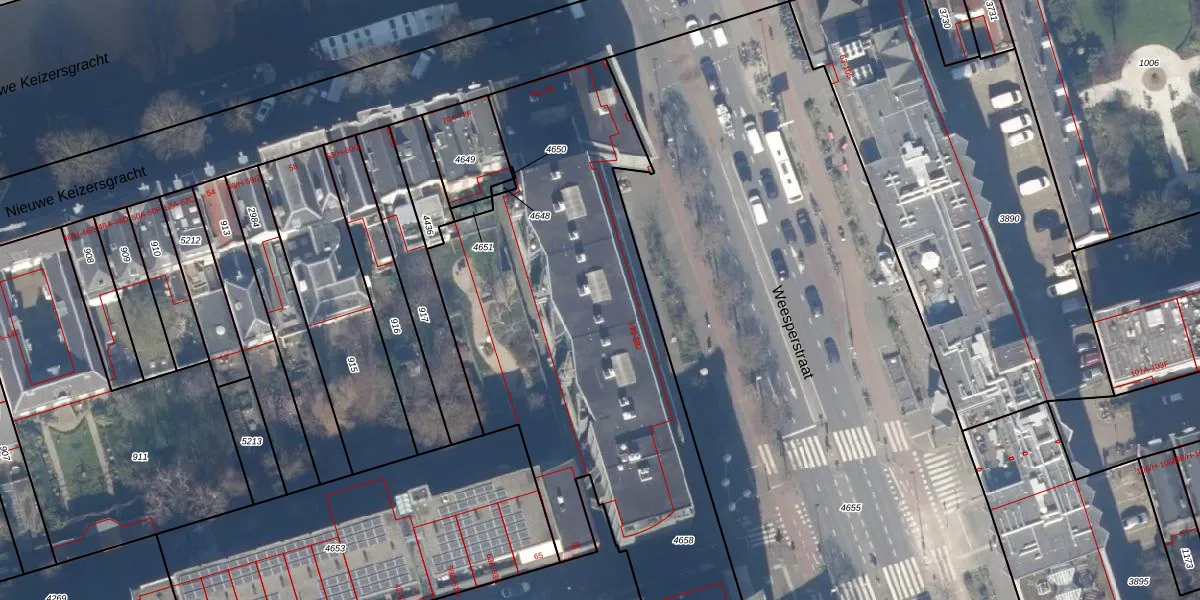 Het perceel waarop Weesperstraat 114 staat heeft een oppervlakte van 4804 m². Dit is een zeer groot perceel. De perceeloppervlakte wordt geregistreerd door het Kadaster. Gedetailleerde informatie over de maten van dit perceel kunt u vinden in het rapport Kadastrale kaart met maatvoering van Weesperstraat 114.
