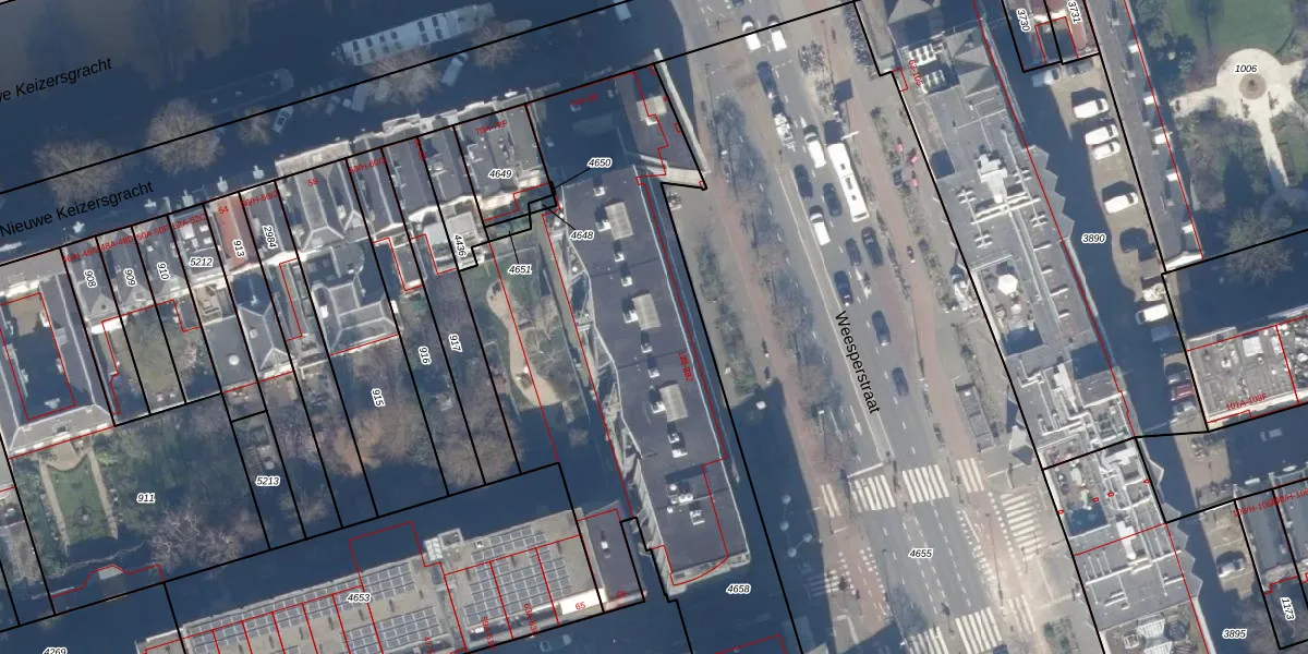 Het perceel waarop Weesperstraat 122 staat heeft een oppervlakte van 4804 m². Dit is een zeer groot perceel. De perceeloppervlakte wordt geregistreerd door het Kadaster. Gedetailleerde informatie over de maten van dit perceel kunt u vinden in het rapport Kadastrale kaart met maatvoering van Weesperstraat 122.