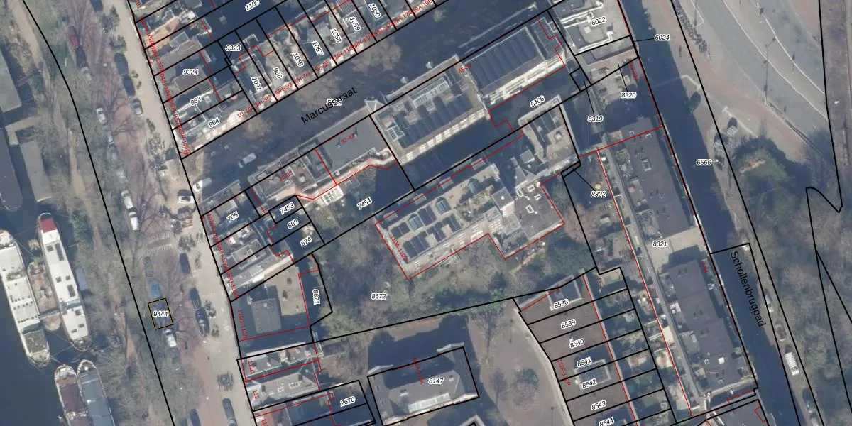 Het perceel waarop het adres ligt is ASD19-W-8672. De afkorting 'ASD19' staat voor kadastrale gemeente Amsterdam. Het perceel is met 1960 m² relatief groot. Het gemiddelde ligt in de kadastrale gemeente Amsterdam op 1563,05 m². De grootste perceeloppervlakte in de kadastrale gemeente is 17,9 ha. De kleinste oppervlakte bedraagt 0 m². Er zijn 24 adressen aanwezig op het perceel. De laatste wijziging in het de Basisregistratie Kadaster (BRK) was op 28-09-2010.