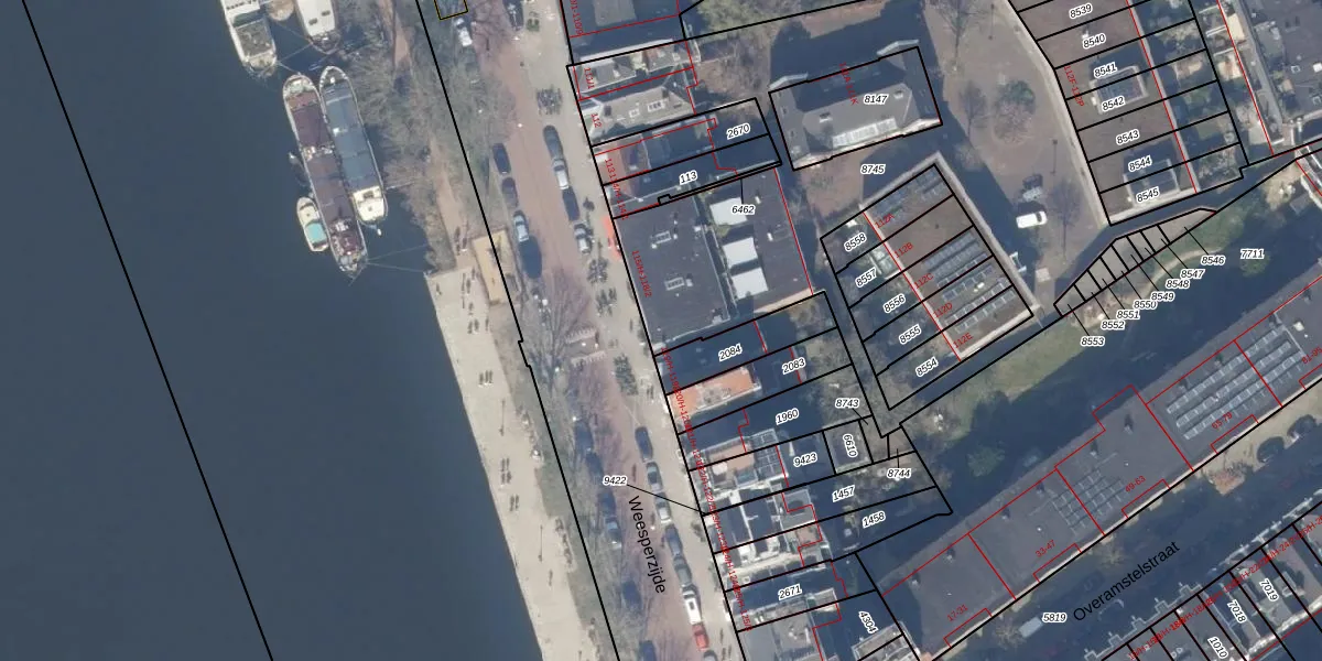 Het perceel waarop Weesperzijde 118-2 staat heeft een oppervlakte van 2986 m². Dit is een zeer groot perceel. De perceeloppervlakte wordt geregistreerd door het Kadaster. Gedetailleerde informatie over de maten van dit perceel kunt u vinden in het rapport Kadastrale kaart met maatvoering van Weesperzijde 118-2.