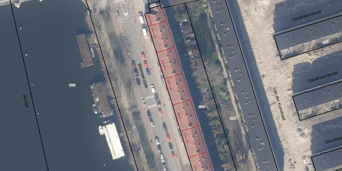 Weesperzijde 166-3 is gelegen op kadastraal perceel WTG02A3756. Deze kadastrale aanduiding is uniek en wordt gebruikt door het Kadaster om eigendomsrechten en andere zakelijke rechten vast te leggen. Het perceel maakt onderdeel uit van de kadastrale gemeente Watergraafsmeer.