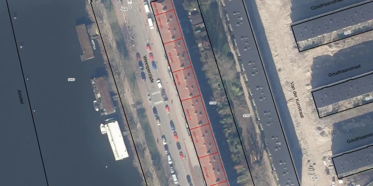 Weesperzijde 168 is gelegen op kadastraal perceel WTG02A3756. Deze kadastrale aanduiding is uniek en wordt gebruikt door het Kadaster om eigendomsrechten en andere zakelijke rechten vast te leggen. Het perceel maakt onderdeel uit van de kadastrale gemeente Watergraafsmeer.