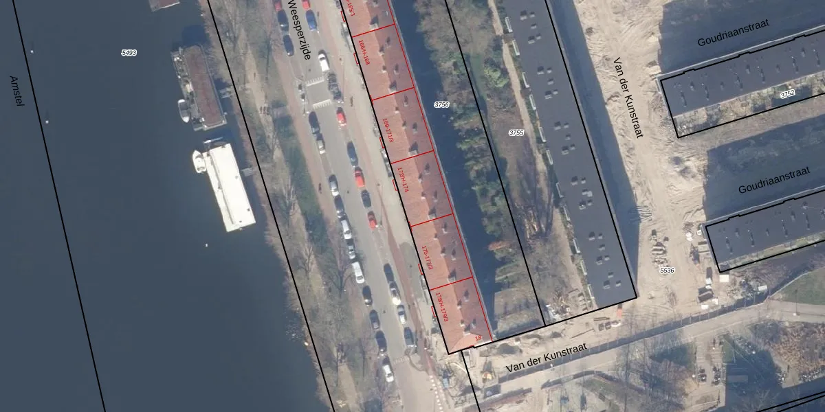 Weesperzijde 173-1 is gelegen op kadastraal perceel WTG02A3756. Deze kadastrale aanduiding is uniek en wordt gebruikt door het Kadaster om eigendomsrechten en andere zakelijke rechten vast te leggen. Het perceel maakt onderdeel uit van de kadastrale gemeente Watergraafsmeer.