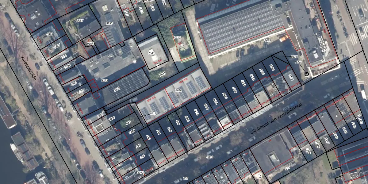 Weesperzijde 80-M is gelegen op kadastraal perceel ASD19W8614. Deze kadastrale aanduiding is uniek en wordt gebruikt door het Kadaster om eigendomsrechten en andere zakelijke rechten vast te leggen. Het perceel maakt onderdeel uit van de kadastrale gemeente Amsterdam.