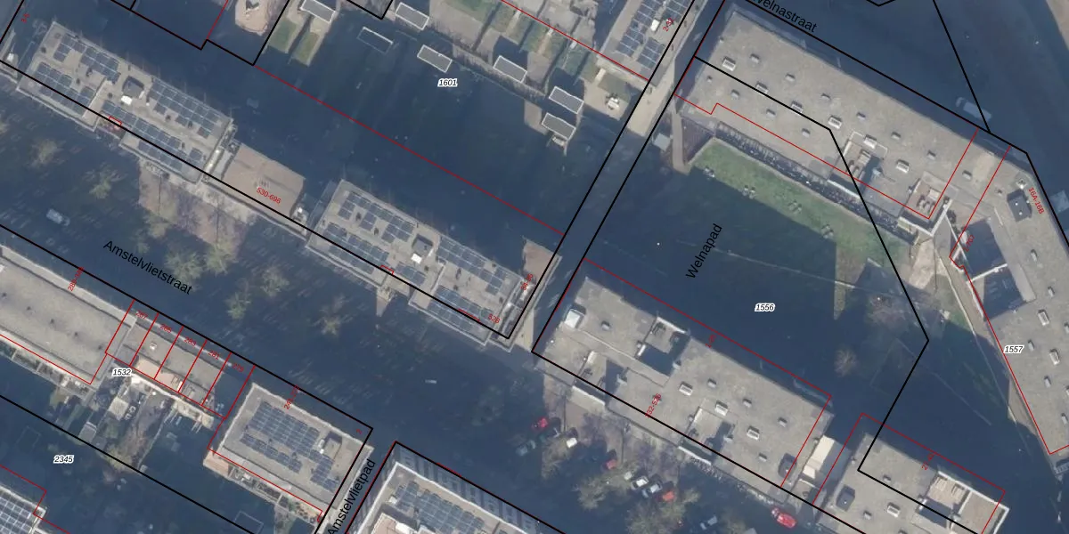 Het adres is gelegen op perceel 1601 in de sectie AG en de kadastrale gemeente Amsterdam. De kadastrale aanduiding is aldus ASD27-AG-1601. De oppervlakte van het perceel is 5460 m². Dat is groter dan gemiddeld in Amsterdam, waar de gemiddelde perceeloppervlakte op 3556,63 m² ligt. De grootste perceeloppervlakte in de kadastrale gemeente is 18,4 ha. De kleinste oppervlakte bedraagt 1 m². Op het perceel zijn 132 adressen aanwezig. In de Basisregistratie Kadaster (BRK) werden de grenzen van het perceel geregistreerd op 05-02-2021.