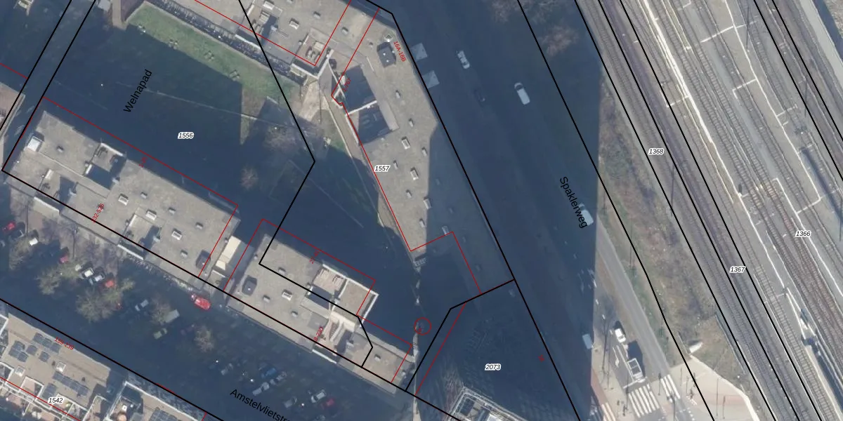 Het adres ligt op het perceel ASD27-AG-1557, dat zich in de kadastrale gemeente Amsterdam bevindt. De oppervlakte van het perceel is 3820 m². Dat is groter dan gemiddeld in Amsterdam, waar de gemiddelde perceeloppervlakte op 3544,61 m² ligt. Het grootste perceel in de kadastrale gemeente is 18,4 ha. Het kleinste perceel heeft een oppervlakte van 1 m². Op het perceel zijn 367 adressen aanwezig. In de Basisregistratie Kadaster (BRK) werden de grenzen van het perceel geregistreerd op 10-04-2020.