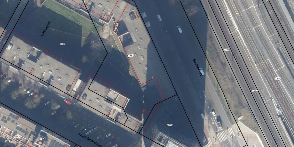 Het adres ligt op het perceel ASD27-AG-1557, dat zich in de kadastrale gemeente Amsterdam bevindt. De oppervlakte van het perceel is 3820 m². Dat is groter dan gemiddeld in Amsterdam, waar de gemiddelde perceeloppervlakte op 3544,61 m² ligt. Het grootste perceel in de kadastrale gemeente is 18,4 ha. Het kleinste perceel heeft een oppervlakte van 1 m². Er zijn 367 adressen aanwezig op het perceel. De laatste wijziging in het de Basisregistratie Kadaster (BRK) was op 10-04-2020.