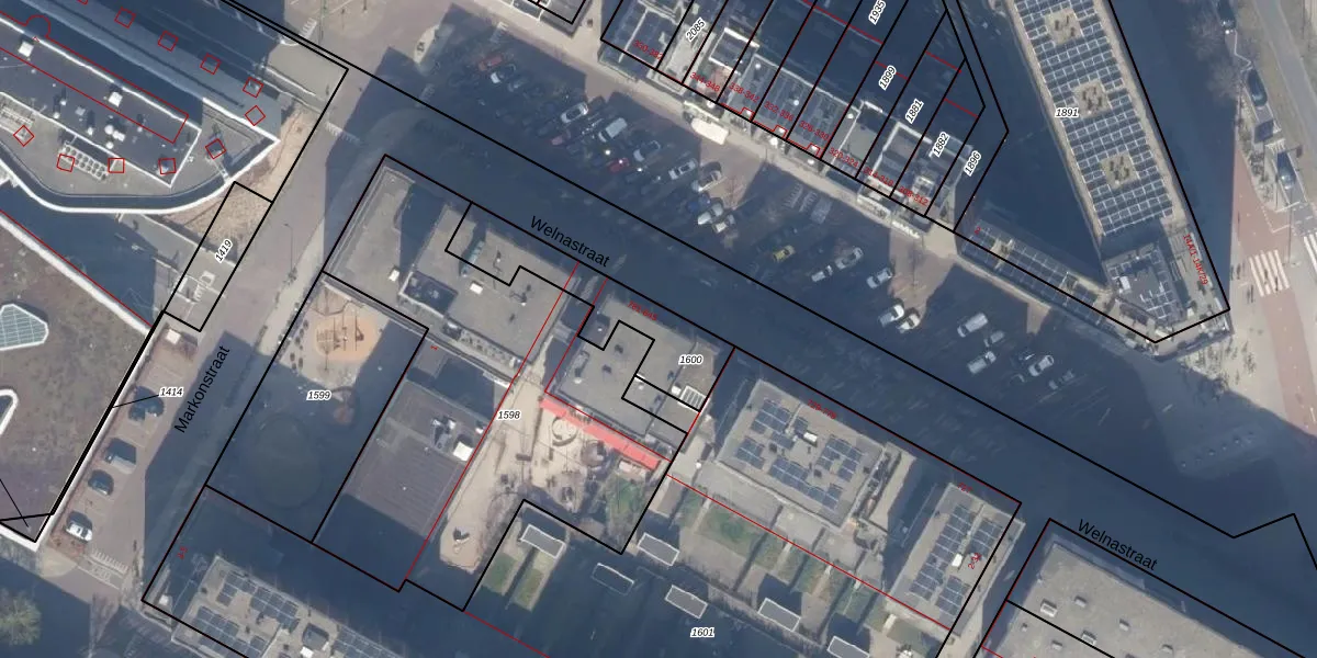 Het perceel waarop het adres ligt is ASD27-AG-1600. De afkorting 'ASD27' staat voor kadastrale gemeente Amsterdam. De gemiddelde perceelgrootte in Amsterdam is 3544,61 m². Dit perceel is kleiner: de perceeloppervlakte bedraagt 360 m². Het kleinste perceel in de kadastrale gemeente is 1 m² groot. De grootste perceeloppervlakte is 18,4 ha. Op het perceel liggen in totaal 15 adressen. De laatste wijziging in het de Basisregistratie Kadaster (BRK) was op 05-02-2021.