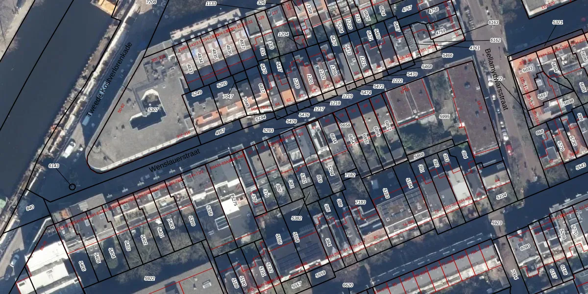 Het adres is gelegen op perceel 5381 in de sectie T en de kadastrale gemeente Amsterdam. De kadastrale aanduiding is aldus ASD16-T-5381. De gemiddelde perceelgrootte in Amsterdam is 245,33 m². Dit perceel is kleiner: de perceeloppervlakte bedraagt 95 m². Het kleinste perceel in de kadastrale gemeente is 0 m² groot. De grootste perceeloppervlakte is 3,3 ha. Op het perceel liggen in totaal 2 adressen. De huidige grenzen van het perceel zijn digitaal in de Basisregistratie Kadaster (BRK) geregistreerd op 12-01-2007.