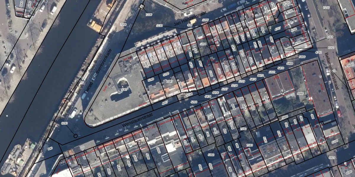 Het adres is gelegen op perceel 5250 in de sectie T en de kadastrale gemeente Amsterdam. De kadastrale aanduiding is aldus ASD16-T-5250. Het perceel is 131 m² groot. Dat is kleiner dan de gemiddelde perceeloppervlakte in Amsterdam, dat op 245,33 m² ligt. Het grootste perceel in de kadastrale gemeente is 3,3 ha. Het kleinste perceel heeft een oppervlakte van 0 m². Er zijn 9 adressen aanwezig op het perceel. In de Basisregistratie Kadaster (BRK) werden de grenzen van het perceel geregistreerd op 15-04-2014.