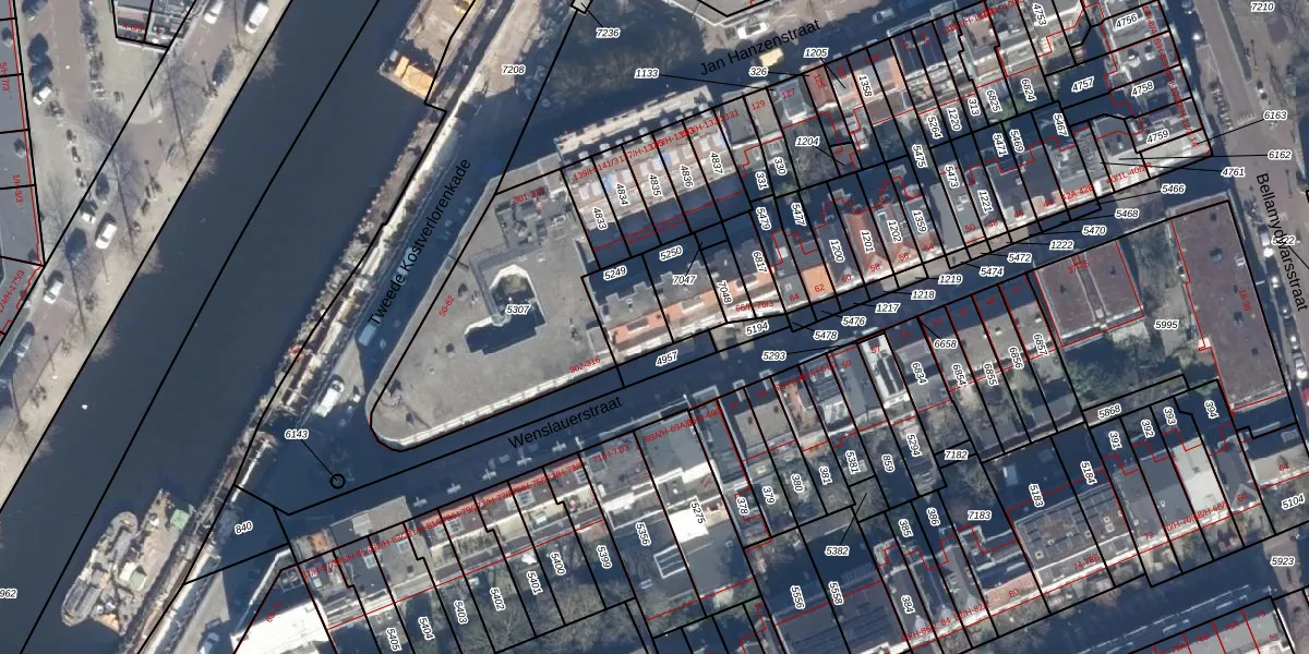 Het adres is gelegen op perceel 5249 in de sectie T en de kadastrale gemeente Amsterdam. De kadastrale aanduiding is aldus ASD16-T-5249. De gemiddelde perceelgrootte in Amsterdam is 245,33 m². Dit perceel is kleiner: de perceeloppervlakte bedraagt 136 m². De grootste perceeloppervlakte in de kadastrale gemeente is 3,3 ha. De kleinste oppervlakte bedraagt 0 m². Op het perceel liggen in totaal 7 adressen. De huidige grenzen van het perceel zijn digitaal in de Basisregistratie Kadaster (BRK) geregistreerd op 15-04-2014.