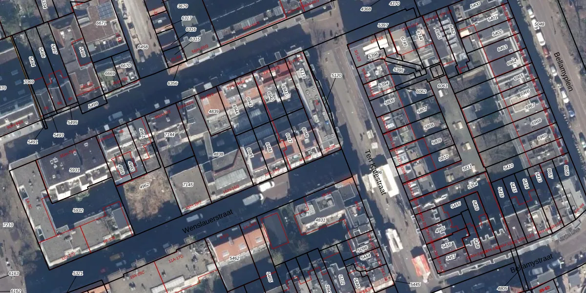 Wenslauerstraat 8-F is gelegen op kadastraal perceel ASD16T6947. Deze kadastrale aanduiding is uniek en wordt gebruikt door het Kadaster om eigendomsrechten en andere zakelijke rechten vast te leggen. Het perceel maakt onderdeel uit van de kadastrale gemeente Amsterdam.