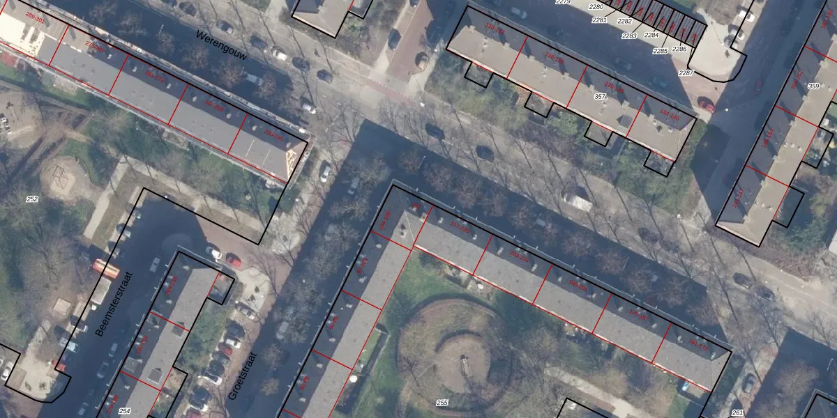 Het perceel waarop Werengouw 231 staat heeft een oppervlakte van 5495 m². Dit is een zeer groot perceel. De perceeloppervlakte wordt geregistreerd door het Kadaster. Gedetailleerde informatie over de maten van dit perceel kunt u vinden in het rapport Kadastrale kaart met maatvoering van Werengouw 231.