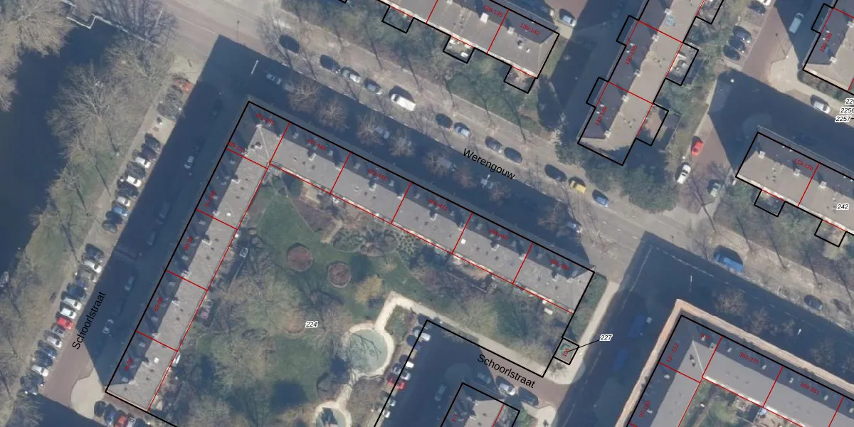 Het perceel waarop Werengouw 417 staat heeft een oppervlakte van 5498 m². Dit is een zeer groot perceel. De perceeloppervlakte wordt geregistreerd door het Kadaster. Gedetailleerde informatie over de maten van dit perceel kunt u vinden in het rapport Kadastrale kaart met maatvoering van Werengouw 417.