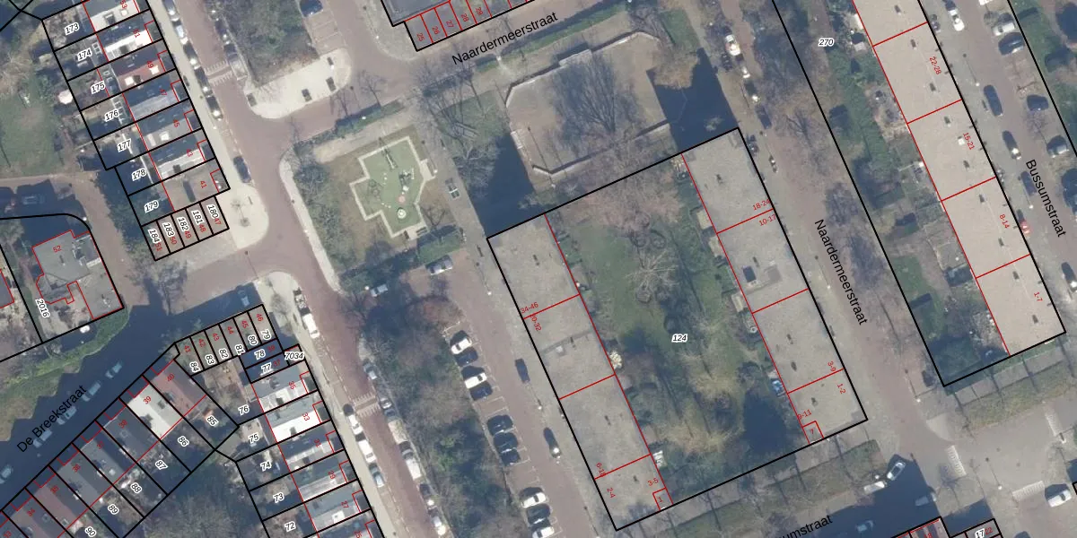 Het adres is gelegen op perceel 124 in de sectie AL en de kadastrale gemeente Amsterdam. De kadastrale aanduiding is aldus ASD31-AL-124. Het perceel is met 3029 m² relatief groot. Het gemiddelde ligt in de kadastrale gemeente Amsterdam op 1159,38 m². Het grootste perceel in de kadastrale gemeente is 35,6 ha. Het kleinste perceel heeft een oppervlakte van 0 m². Op het perceel liggen in totaal 53 adressen. De huidige grenzen van het perceel zijn digitaal in de Basisregistratie Kadaster (BRK) geregistreerd op 30-05-2011.