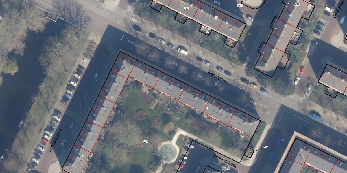 Het perceel waarop Werengouw 427 staat heeft een oppervlakte van 5498 m². Dit is een zeer groot perceel. De perceeloppervlakte wordt geregistreerd door het Kadaster. Gedetailleerde informatie over de maten van dit perceel kunt u vinden in het rapport Kadastrale kaart met maatvoering van Werengouw 427.