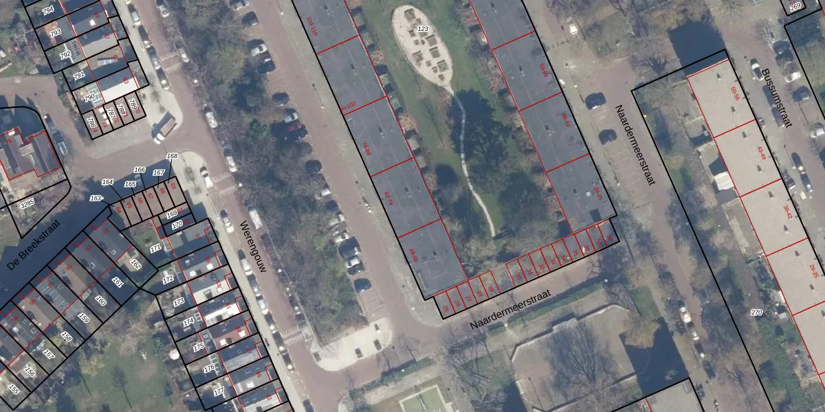 Het perceel waarop Werengouw 66 staat heeft een oppervlakte van 6936 m². Dit is een zeer groot perceel. De perceeloppervlakte wordt geregistreerd door het Kadaster. Gedetailleerde informatie over de maten van dit perceel kunt u vinden in het rapport Kadastrale kaart met maatvoering van Werengouw 66.