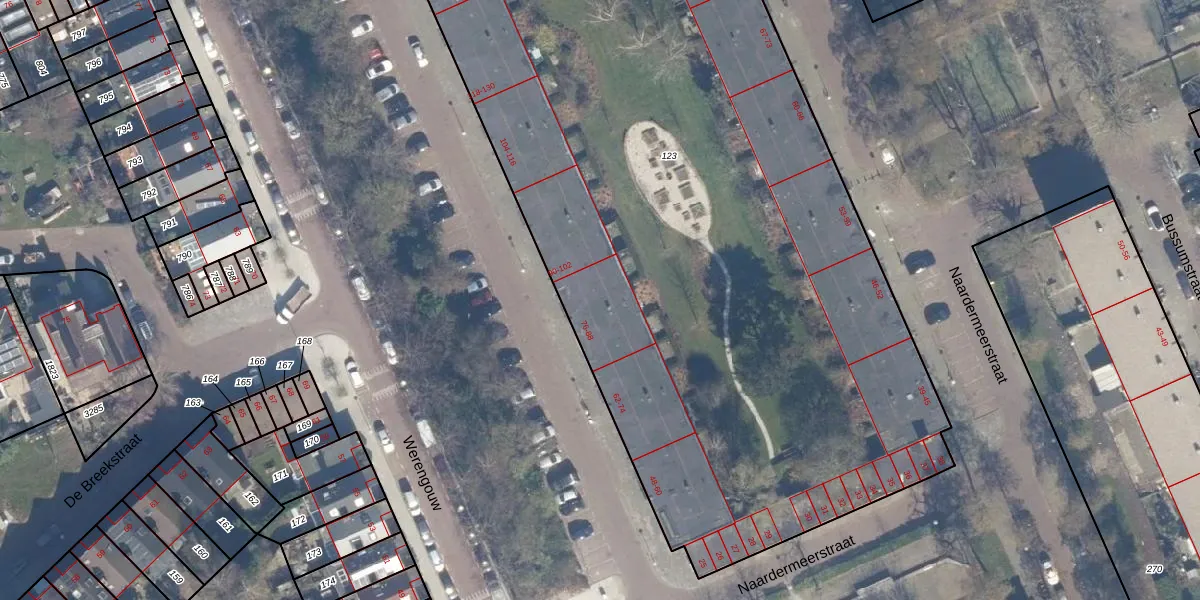 Het perceel waarop Werengouw 84 staat heeft een oppervlakte van 6936 m². Dit is een zeer groot perceel. De perceeloppervlakte wordt geregistreerd door het Kadaster. Gedetailleerde informatie over de maten van dit perceel kunt u vinden in het rapport Kadastrale kaart met maatvoering van Werengouw 84.