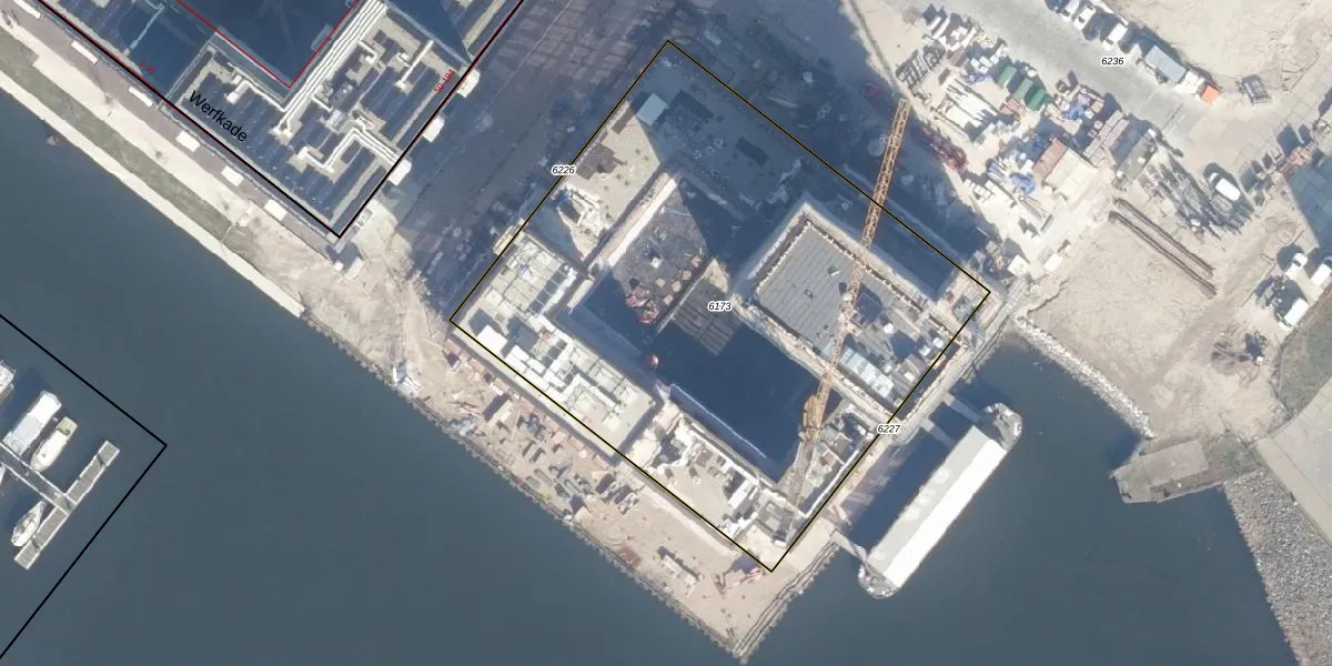 Het perceel waarop Werfkade 131 staat heeft een oppervlakte van 3309 m². Dit is een zeer groot perceel. De perceeloppervlakte wordt geregistreerd door het Kadaster. Gedetailleerde informatie over de maten van dit perceel kunt u vinden in het rapport Kadastrale kaart met maatvoering van Werfkade 131.