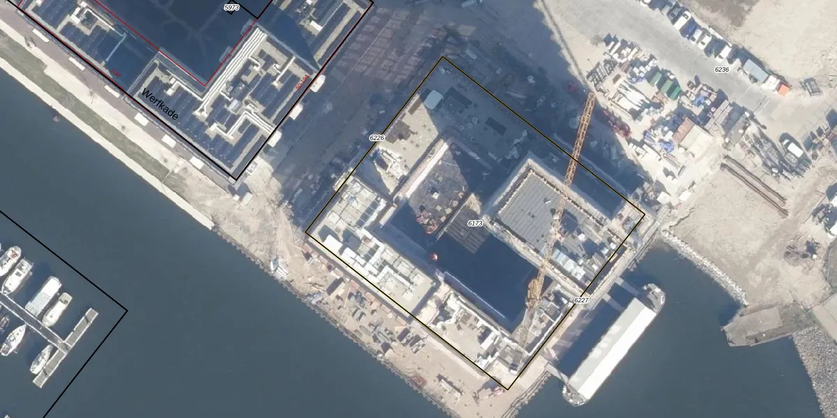 Het perceel waarop Werfkade 141 staat heeft een oppervlakte van 3309 m². Dit is een zeer groot perceel. De perceeloppervlakte wordt geregistreerd door het Kadaster. Gedetailleerde informatie over de maten van dit perceel kunt u vinden in het rapport Kadastrale kaart met maatvoering van Werfkade 141.