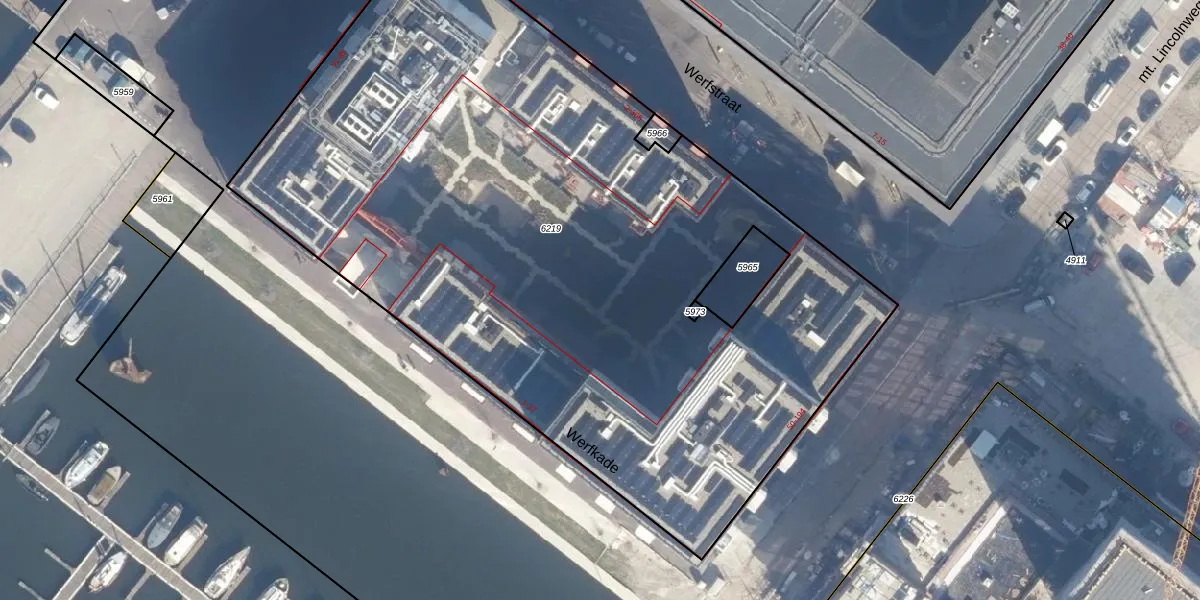 Het perceel waarop Werfkade 33 staat heeft een oppervlakte van 5231 m². Dit is een zeer groot perceel. De perceeloppervlakte wordt geregistreerd door het Kadaster. Gedetailleerde informatie over de maten van dit perceel kunt u vinden in het rapport Kadastrale kaart met maatvoering van Werfkade 33.