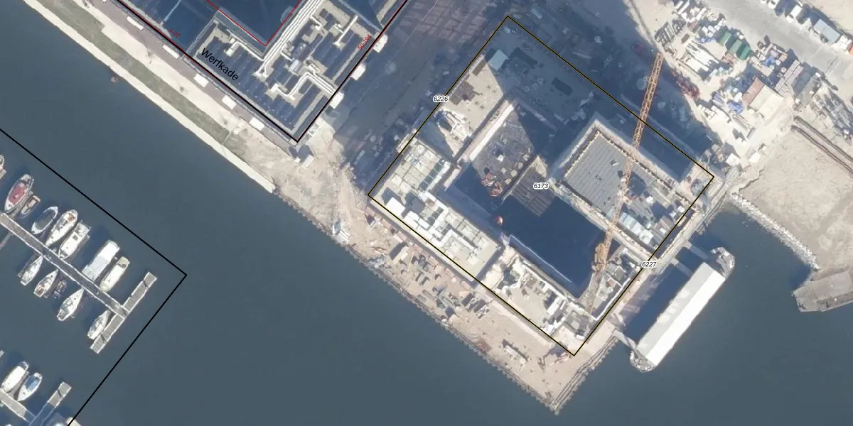 Het perceel waarop Werfkade 55 staat heeft een oppervlakte van 3309 m². Dit is een zeer groot perceel. De perceeloppervlakte wordt geregistreerd door het Kadaster. Gedetailleerde informatie over de maten van dit perceel kunt u vinden in het rapport Kadastrale kaart met maatvoering van Werfkade 55.