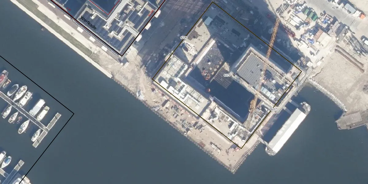 Het perceel waarop Werfkade 57 staat heeft een oppervlakte van 3309 m². Dit is een zeer groot perceel. De perceeloppervlakte wordt geregistreerd door het Kadaster. Gedetailleerde informatie over de maten van dit perceel kunt u vinden in het rapport Kadastrale kaart met maatvoering van Werfkade 57.