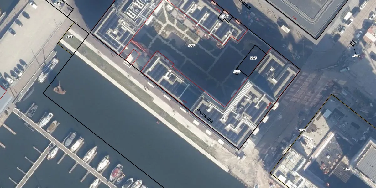 Het perceel waarop Werfkade 9 staat heeft een oppervlakte van 5231 m². Dit is een zeer groot perceel. De perceeloppervlakte wordt geregistreerd door het Kadaster. Gedetailleerde informatie over de maten van dit perceel kunt u vinden in het rapport Kadastrale kaart met maatvoering van Werfkade 9.