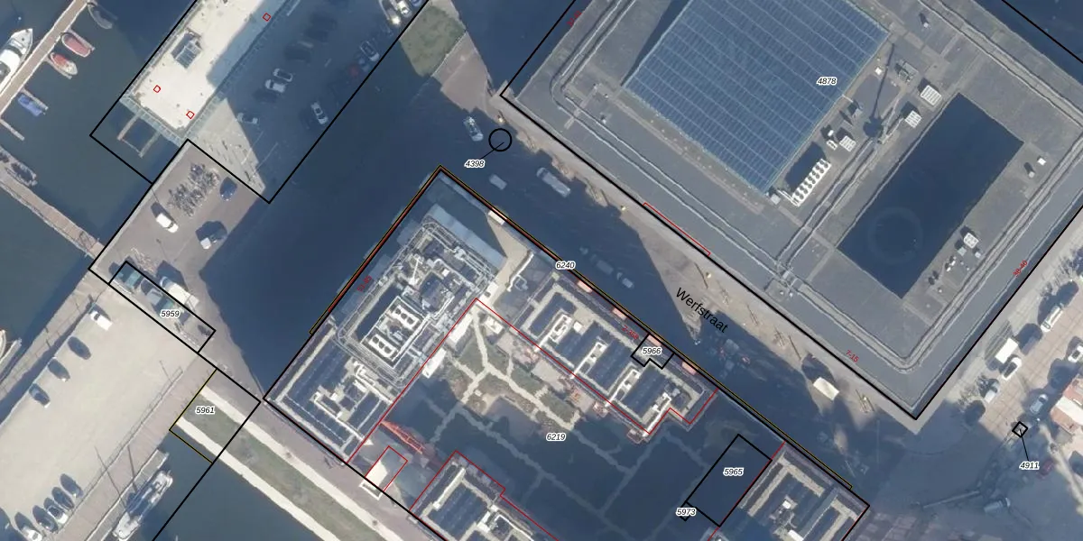 Het perceel waarop Werfstraat 12 staat heeft een oppervlakte van 5231 m². Dit is een zeer groot perceel. De perceeloppervlakte wordt geregistreerd door het Kadaster. Gedetailleerde informatie over de maten van dit perceel kunt u vinden in het rapport Kadastrale kaart met maatvoering van Werfstraat 12.