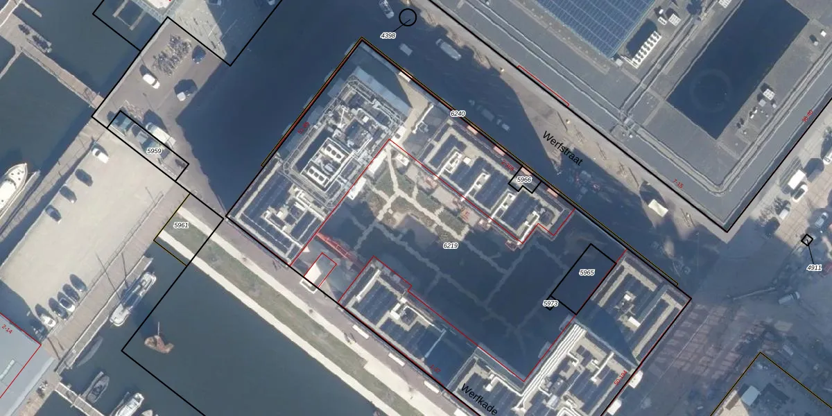 Het perceel waarop Werfstraat 152 staat heeft een oppervlakte van 5231 m². Dit is een zeer groot perceel. De perceeloppervlakte wordt geregistreerd door het Kadaster. Gedetailleerde informatie over de maten van dit perceel kunt u vinden in het rapport Kadastrale kaart met maatvoering van Werfstraat 152.