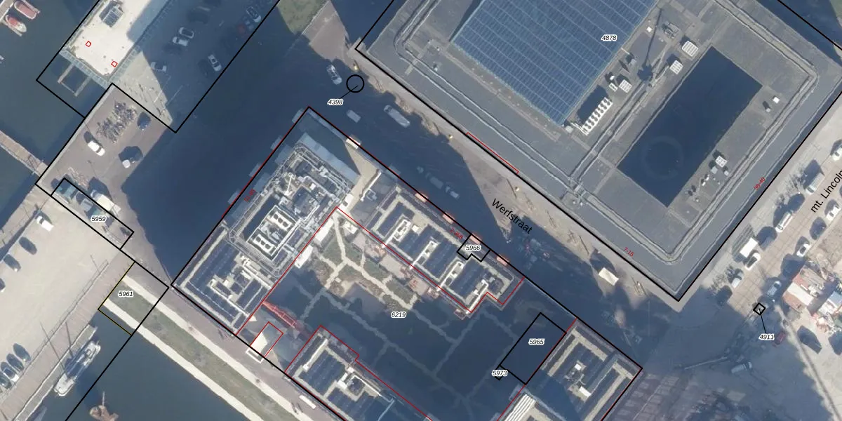 Het perceel waarop Werfstraat 16 staat heeft een oppervlakte van 5231 m². Dit is een zeer groot perceel. De perceeloppervlakte wordt geregistreerd door het Kadaster. Gedetailleerde informatie over de maten van dit perceel kunt u vinden in het rapport Kadastrale kaart met maatvoering van Werfstraat 16.