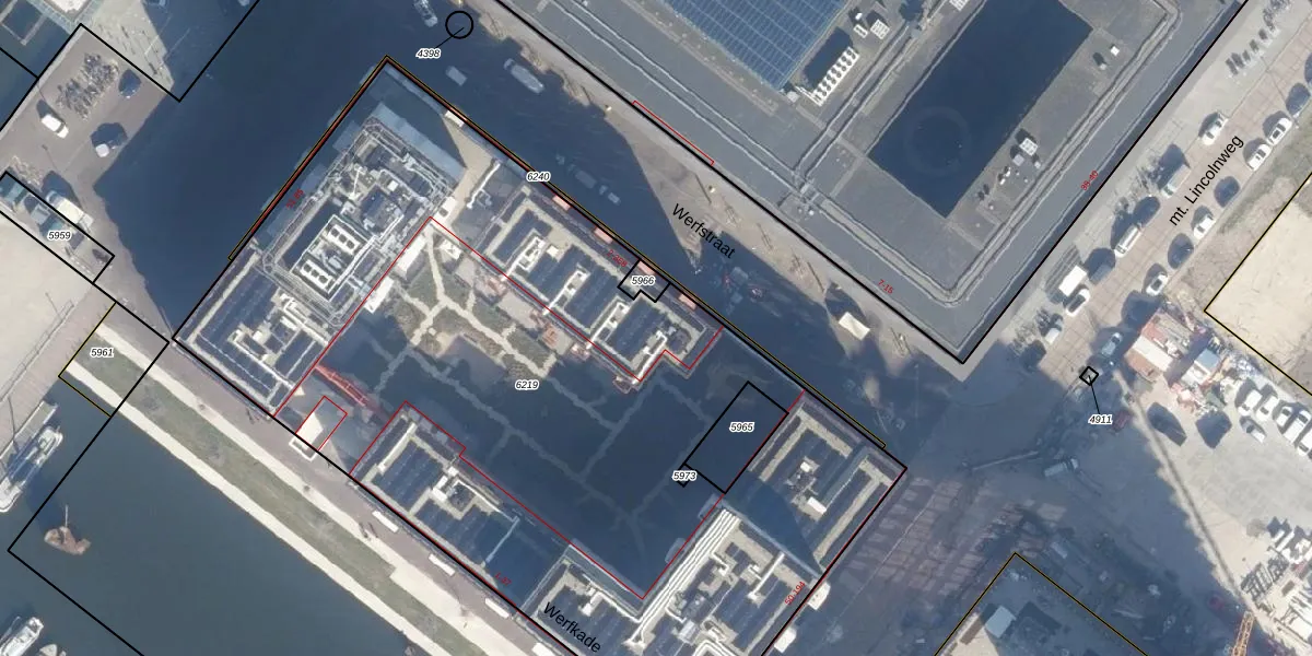 Het perceel waarop Werfstraat 250 staat heeft een oppervlakte van 5231 m². Dit is een zeer groot perceel. De perceeloppervlakte wordt geregistreerd door het Kadaster. Gedetailleerde informatie over de maten van dit perceel kunt u vinden in het rapport Kadastrale kaart met maatvoering van Werfstraat 250.