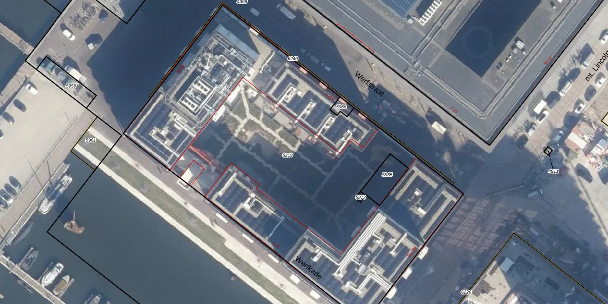 Het perceel waarop Werfstraat 296 staat heeft een oppervlakte van 5231 m². Dit is een zeer groot perceel. De perceeloppervlakte wordt geregistreerd door het Kadaster. Gedetailleerde informatie over de maten van dit perceel kunt u vinden in het rapport Kadastrale kaart met maatvoering van Werfstraat 296.