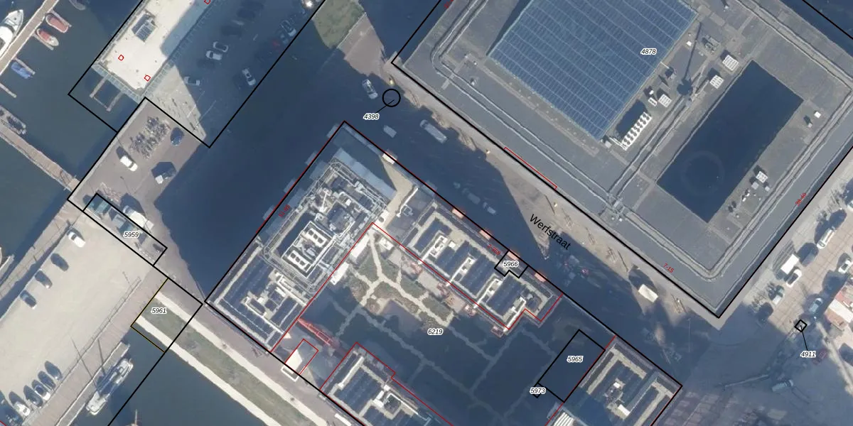 Het perceel waarop Werfstraat 32 staat heeft een oppervlakte van 5231 m². Dit is een zeer groot perceel. De perceeloppervlakte wordt geregistreerd door het Kadaster. Gedetailleerde informatie over de maten van dit perceel kunt u vinden in het rapport Kadastrale kaart met maatvoering van Werfstraat 32.
