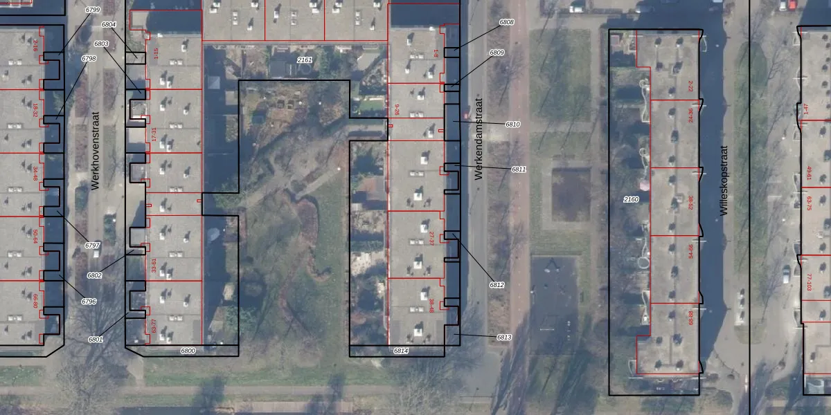 Het perceel waarop Werkendamstraat 26 staat heeft een oppervlakte van 5253 m². Dit is een zeer groot perceel. De perceeloppervlakte wordt geregistreerd door het Kadaster. Gedetailleerde informatie over de maten van dit perceel kunt u vinden in het rapport Kadastrale kaart met maatvoering van Werkendamstraat 26.