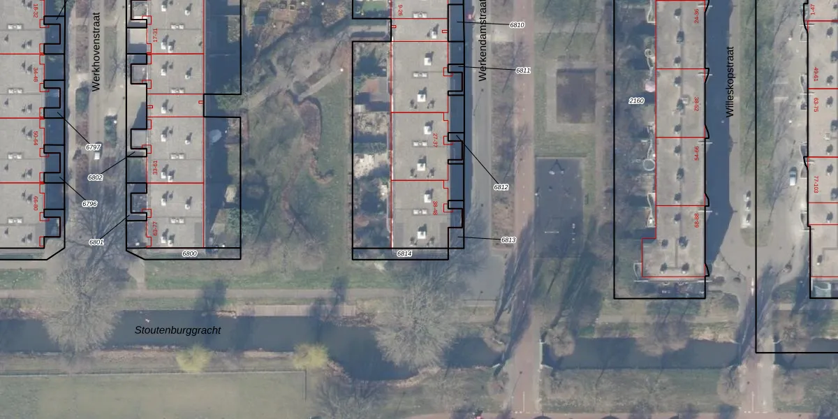 Het perceel waarop Werkendamstraat 41 staat heeft een oppervlakte van 5253 m². Dit is een zeer groot perceel. De perceeloppervlakte wordt geregistreerd door het Kadaster. Gedetailleerde informatie over de maten van dit perceel kunt u vinden in het rapport Kadastrale kaart met maatvoering van Werkendamstraat 41.