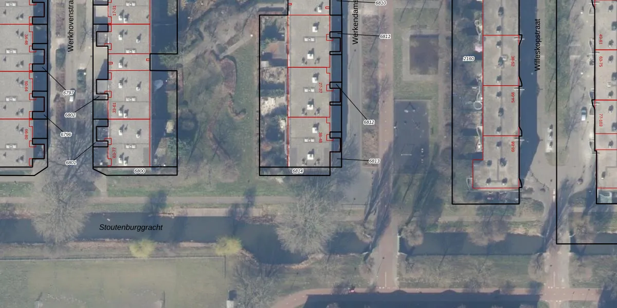 Het perceel waarop Werkendamstraat 45 staat heeft een oppervlakte van 5253 m². Dit is een zeer groot perceel. De perceeloppervlakte wordt geregistreerd door het Kadaster. Gedetailleerde informatie over de maten van dit perceel kunt u vinden in het rapport Kadastrale kaart met maatvoering van Werkendamstraat 45.