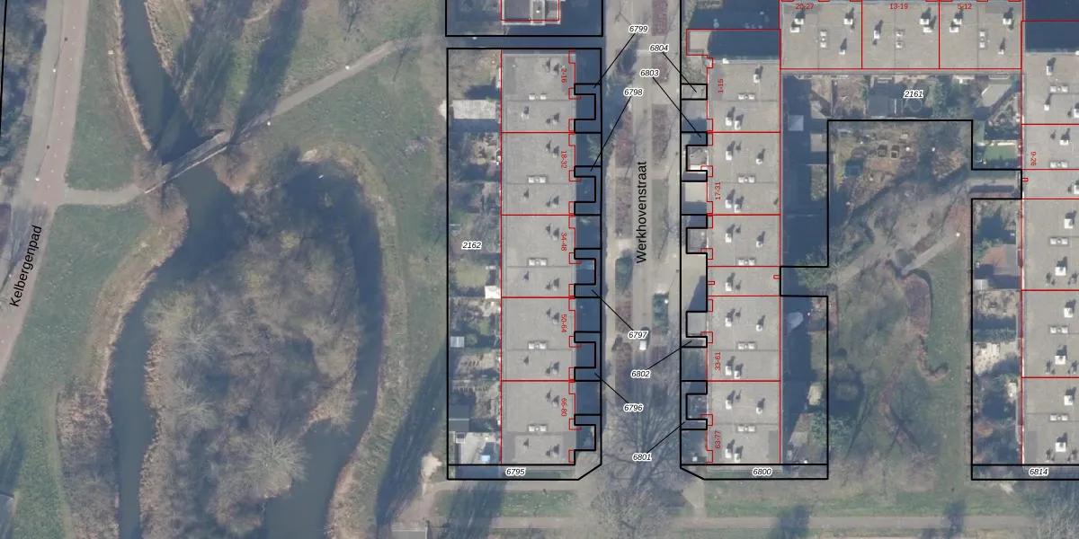 Het perceel waarop Werkhovenstraat 44 staat heeft een oppervlakte van 2067 m². Dit is een zeer groot perceel. De perceeloppervlakte wordt geregistreerd door het Kadaster. Gedetailleerde informatie over de maten van dit perceel kunt u vinden in het rapport Kadastrale kaart met maatvoering van Werkhovenstraat 44.