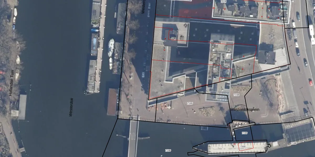 Het perceel waarop Westerdok 202 staat heeft een oppervlakte van 7987 m². Dit is een zeer groot perceel. De perceeloppervlakte wordt geregistreerd door het Kadaster. Gedetailleerde informatie over de maten van dit perceel kunt u vinden in het rapport Kadastrale kaart met maatvoering van Westerdok 202.