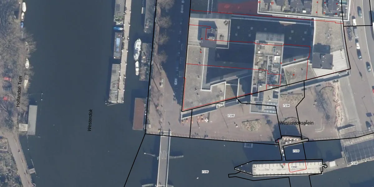 Het perceel waarop Westerdok 22 staat heeft een oppervlakte van 7987 m². Dit is een zeer groot perceel. De perceeloppervlakte wordt geregistreerd door het Kadaster. Gedetailleerde informatie over de maten van dit perceel kunt u vinden in het rapport Kadastrale kaart met maatvoering van Westerdok 22.