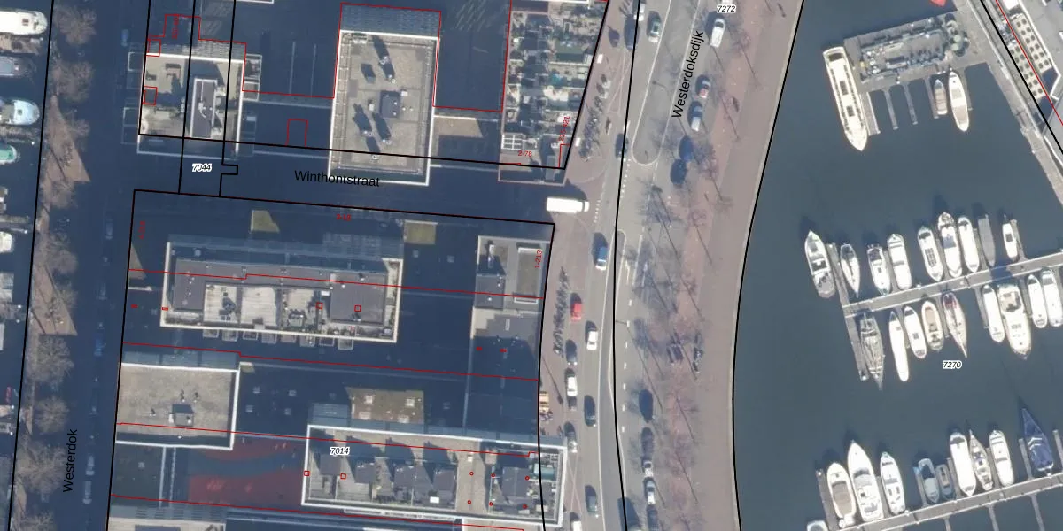 Het perceel waarop Westerdoksdijk 165 staat heeft een oppervlakte van 7987 m². Dit is een zeer groot perceel. De perceeloppervlakte wordt geregistreerd door het Kadaster. Gedetailleerde informatie over de maten van dit perceel kunt u vinden in het rapport Kadastrale kaart met maatvoering van Westerdoksdijk 165.